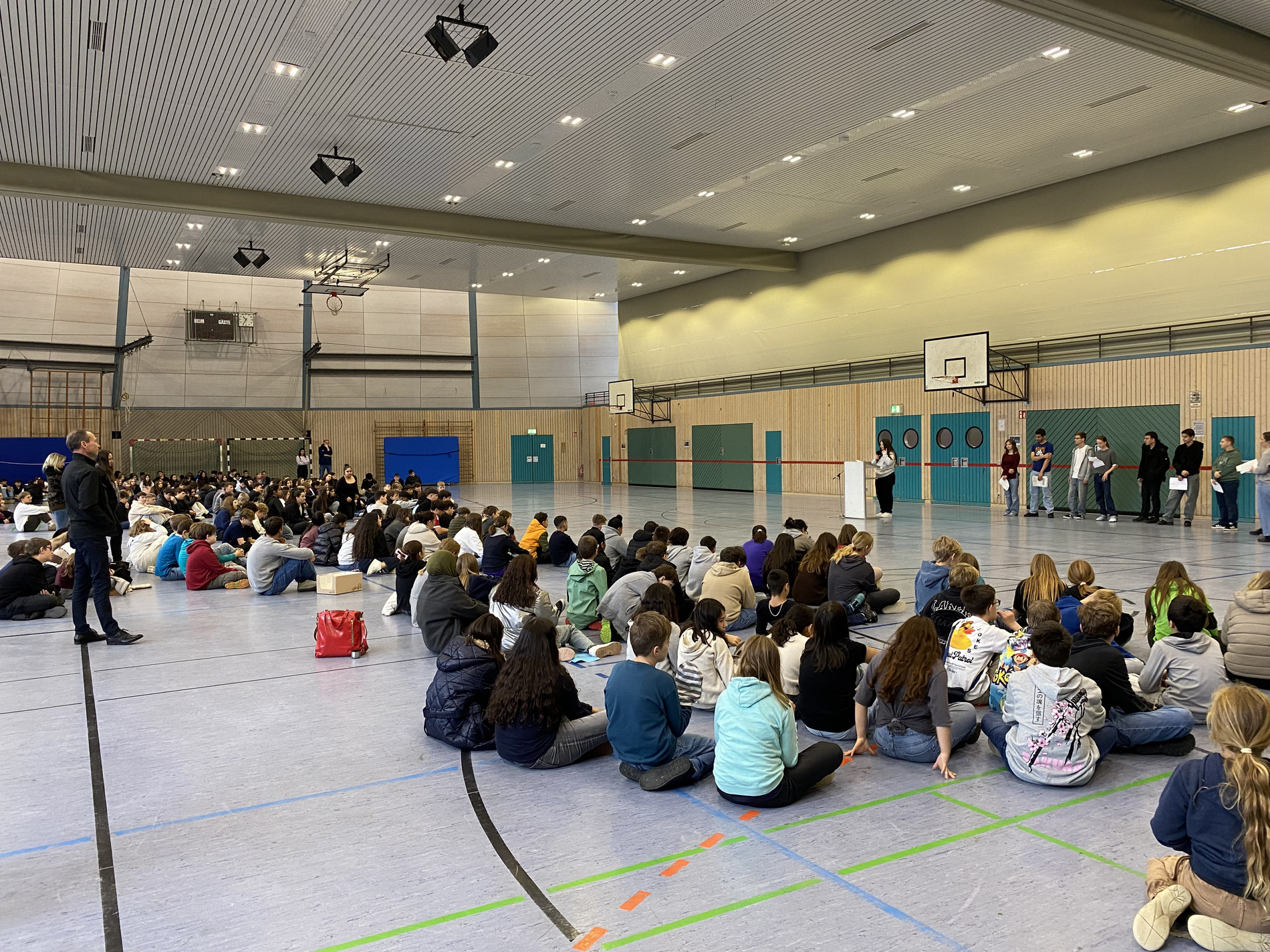 Am Donnerstag, den 16.10.2025, fand unsere Schülervolllversammlung für die Wahl der neuen Schülersprecher/innen statt. Acht Kandidaten und Kandidatinnen präsentierten sich vor allen Schülern der Klassen 3 bis 10 und erklärten souverän ihre Ideen, die sie für unsere Schule haben.